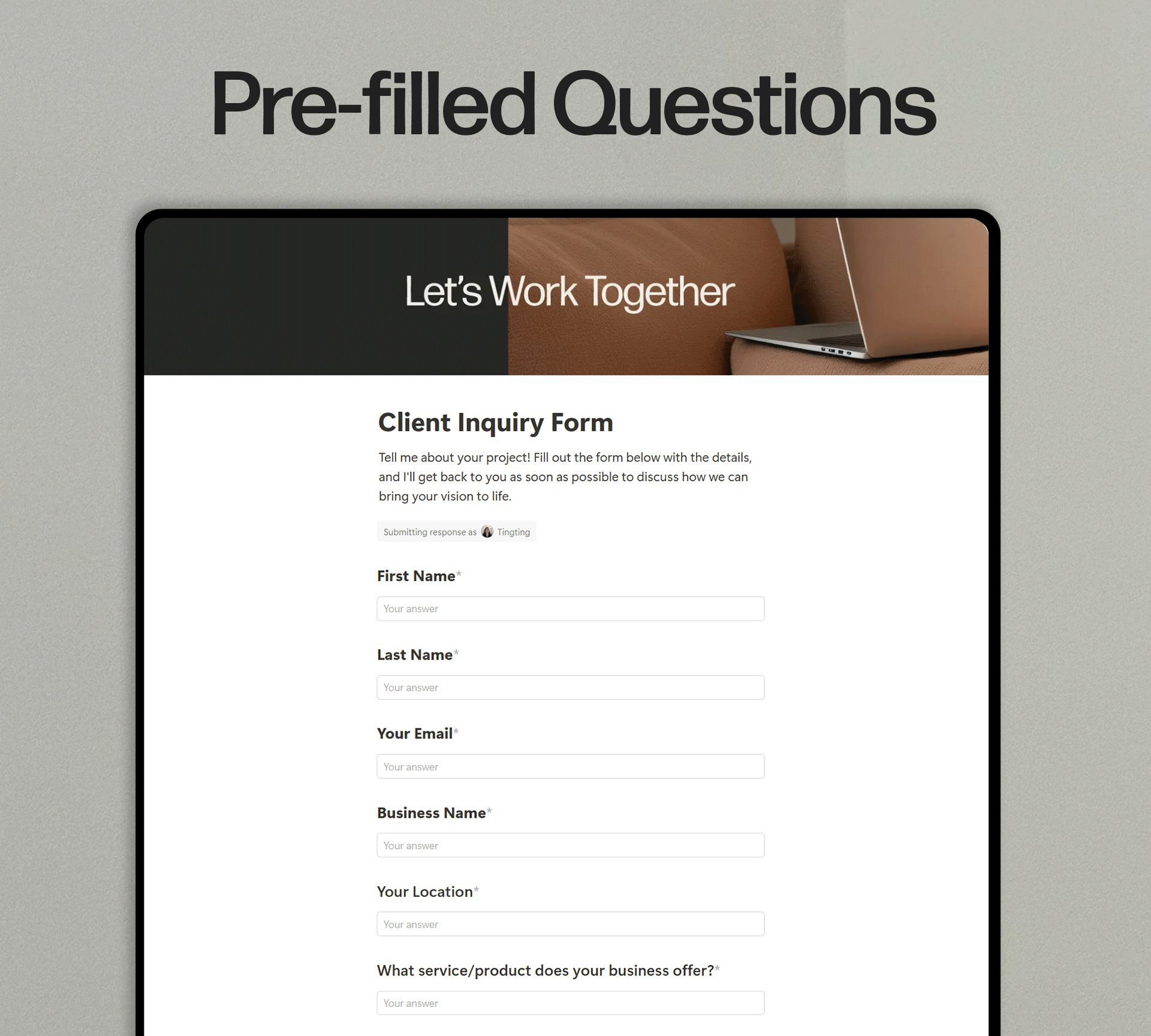 ✅ Ready to Use: Pre-filled with standard questions—perfect for creatives and designers.