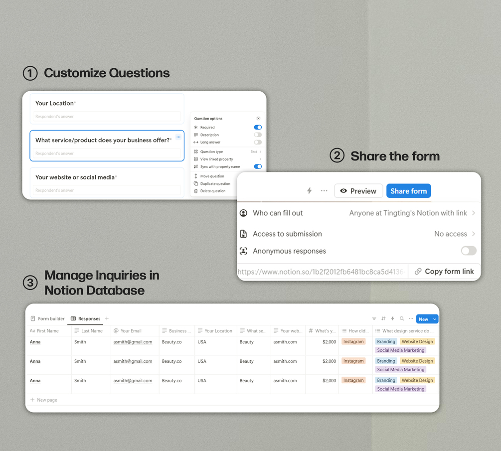 ✅ Organized Database: Track and manage inquiries in one centralized space.